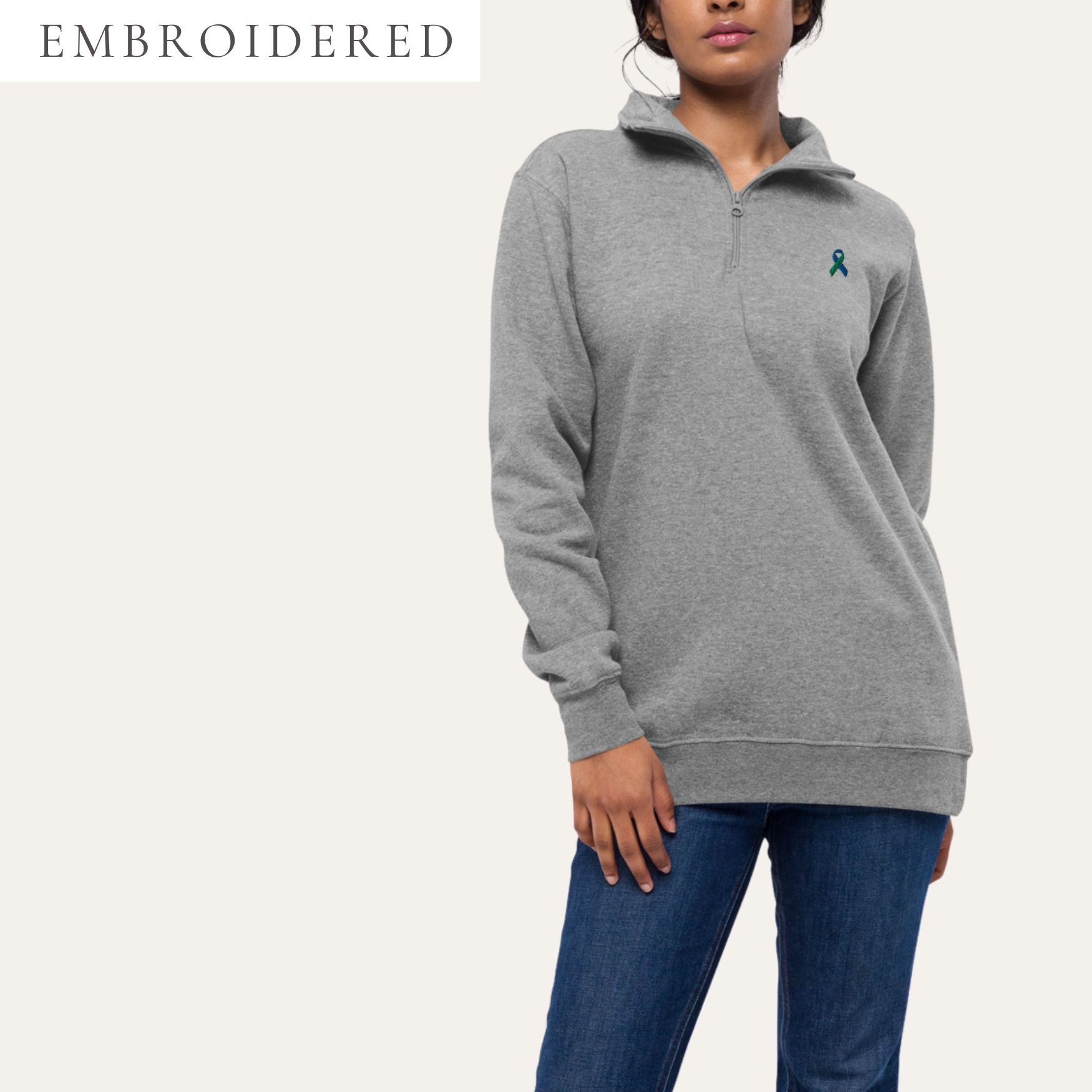 Blue & Green Awareness Ribbon Embroidered Fleece Pullover