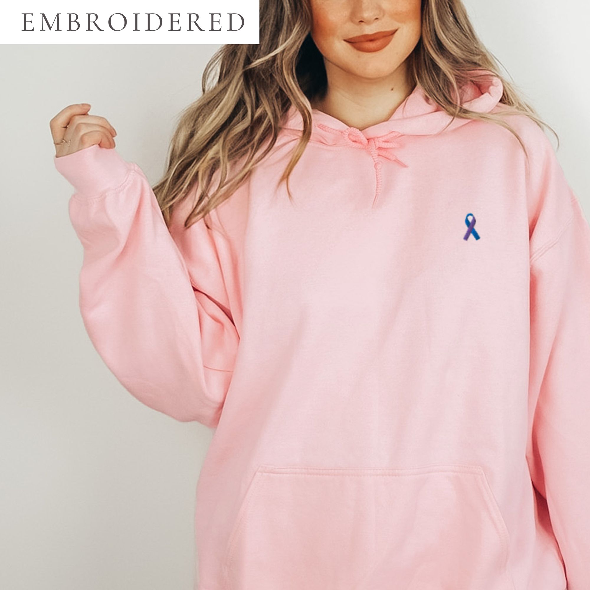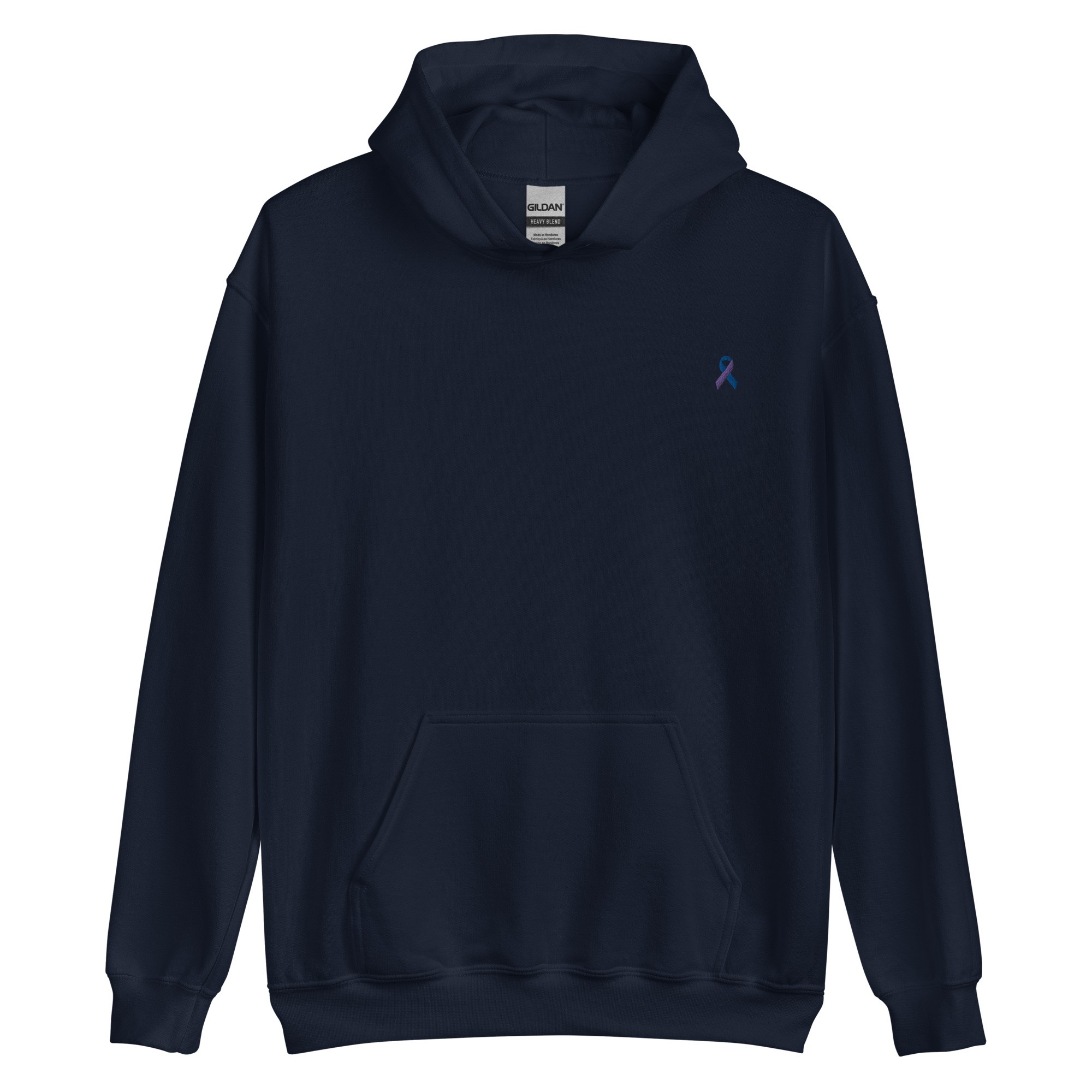 IMAGE ID: A Hoodie With An Embroidered Awareness Ribbon In The Upper Left Of The Chest. Available In Multiple Colors.