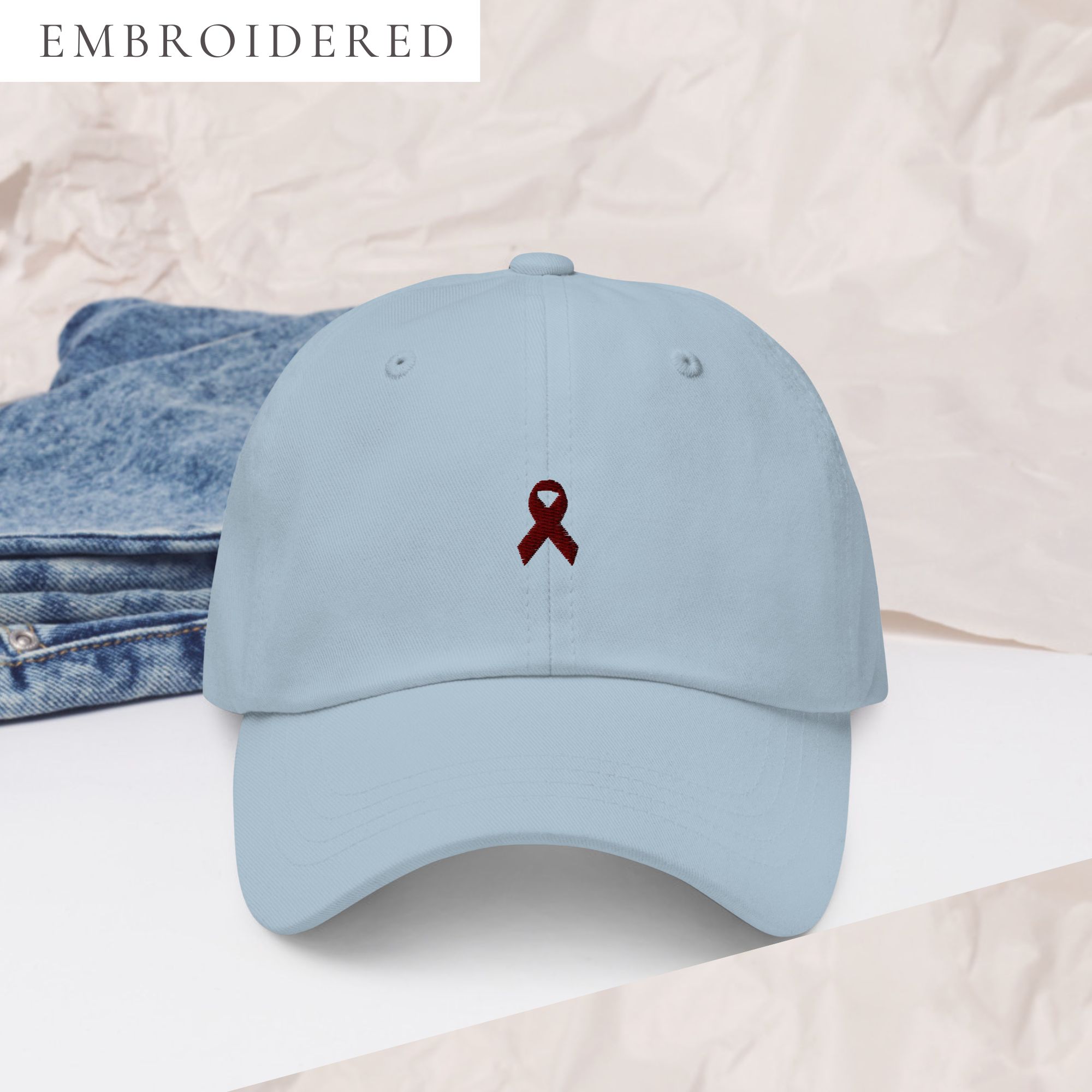 IMAGE ID: A Dad Hat With The Awareness Ribbon Embroidered In The Center.