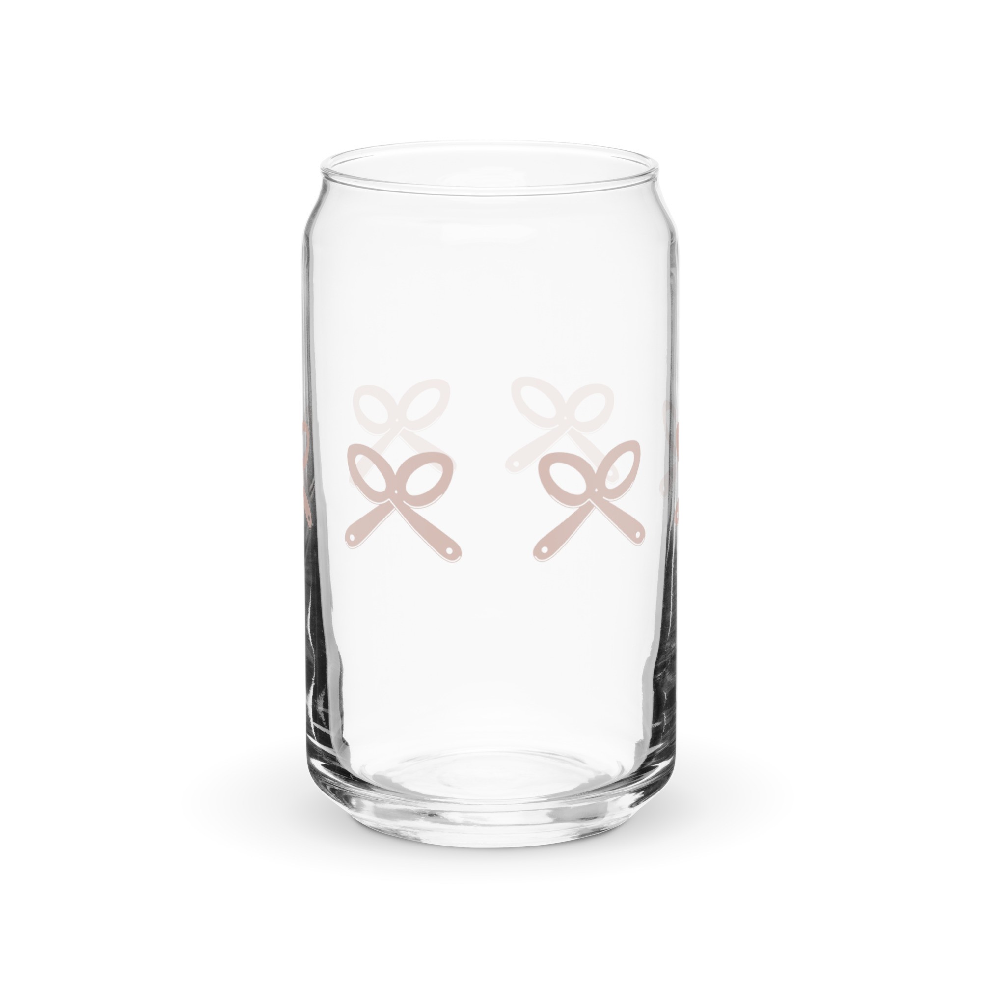 IMAGE ID: Glass Drinkware With Straw And Lid With Logo In Pink Repeated On Cup.