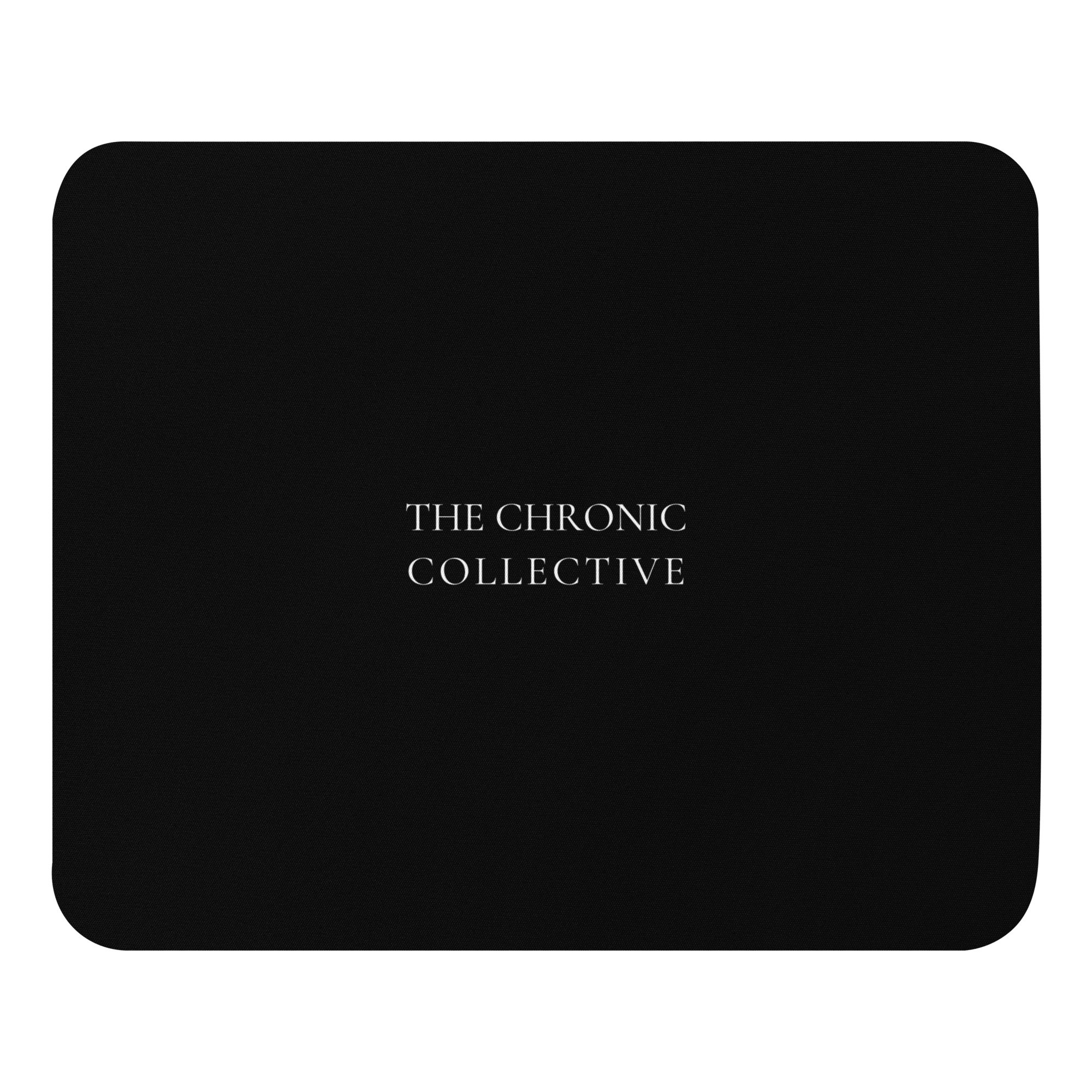 IMAGE ID: Black Mouse Pad With “The Chronic Collective” Written In The Center In White.