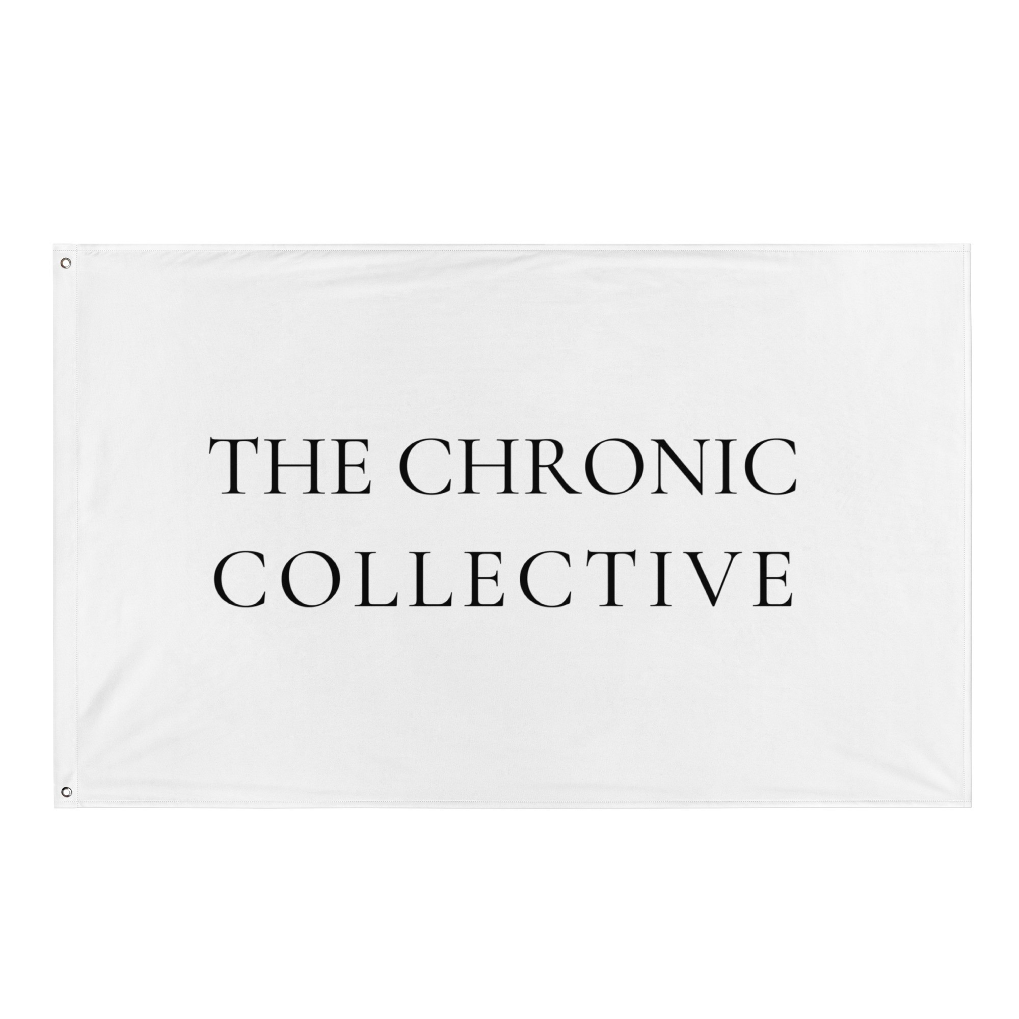 IMAGE ID: White Flag With The Words, “The Chronic Collective” In Black On It.