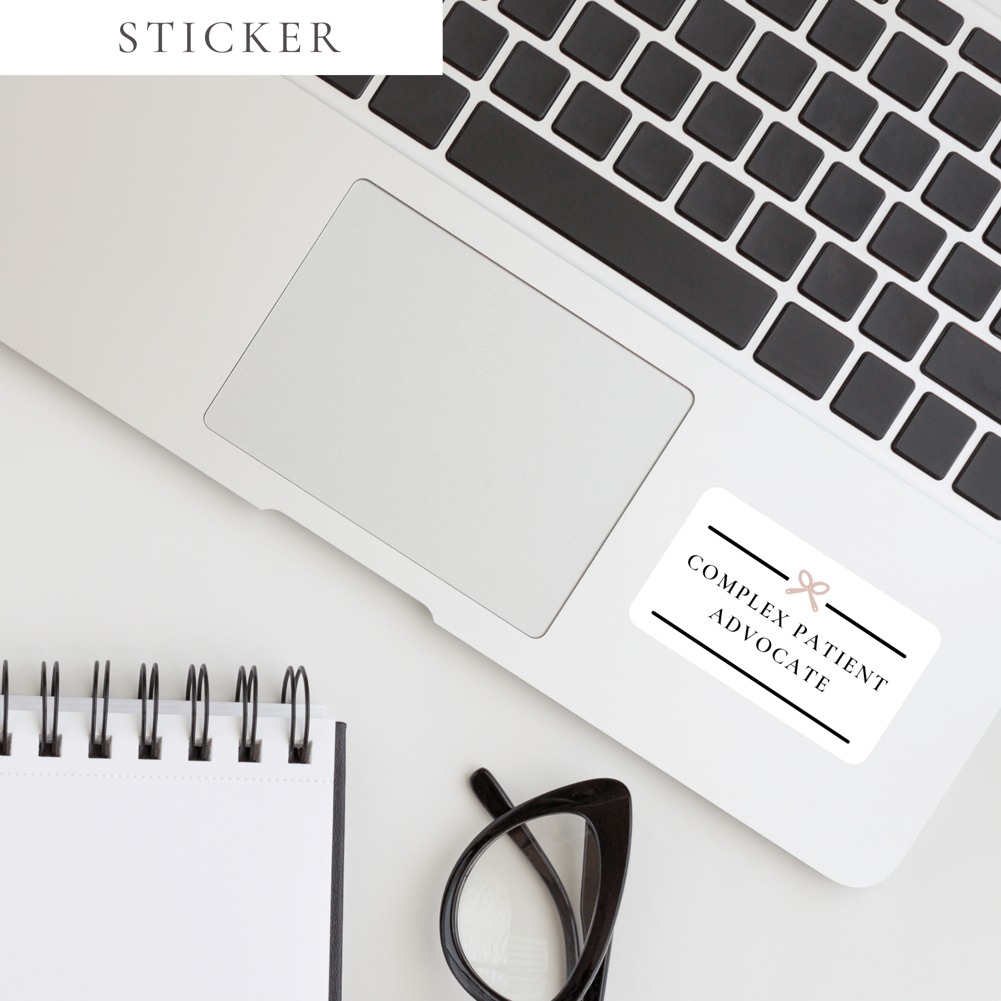 IMAGE ID: Sticker With Two Black Lines Encasing The Awareness Ribbon Above The Name Of The Specific Disease Followed By The Word “Advocate” Printed On A White Background. Available In Sizes 3″x3″, 4″x4″ And 5.5″x5.5″.
