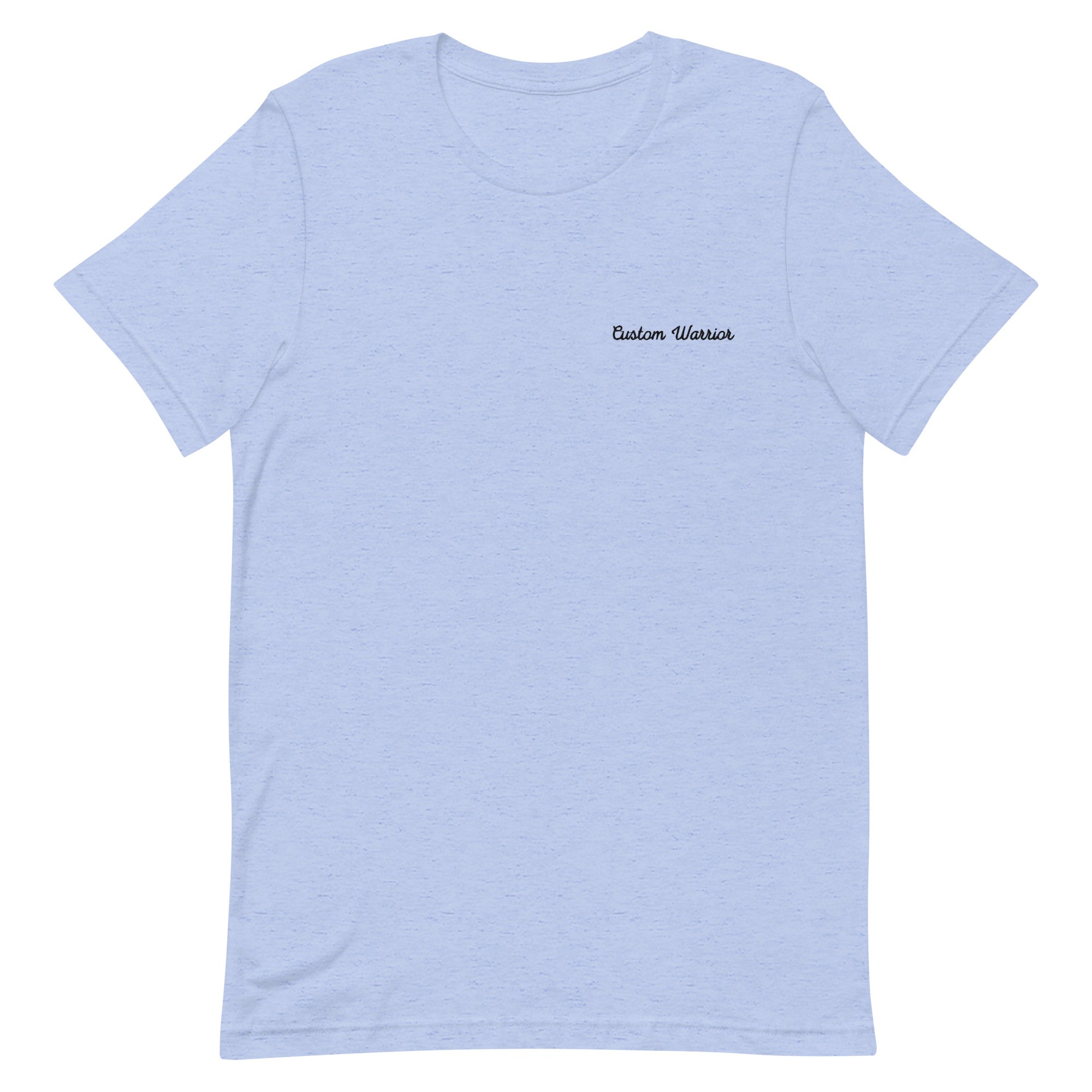 IMAGE ID: Unisex Style T-Shirt. Design Features The Custom Disease Embroidered On The Left Side Of The Chest With A Cursive Font. The T-Shirt Is Available In Black, Heather Black, Heather Midnight Navy, Heather Forest, Heather True Blue, Dark Gray Heather, Heather Raspberry, Heather Deep Teal, Mauve, Heather Prism Lilac, Heather Prism Dusty Blue, Heather Blue, Heather Prism Peach, Athletic Heather and White.