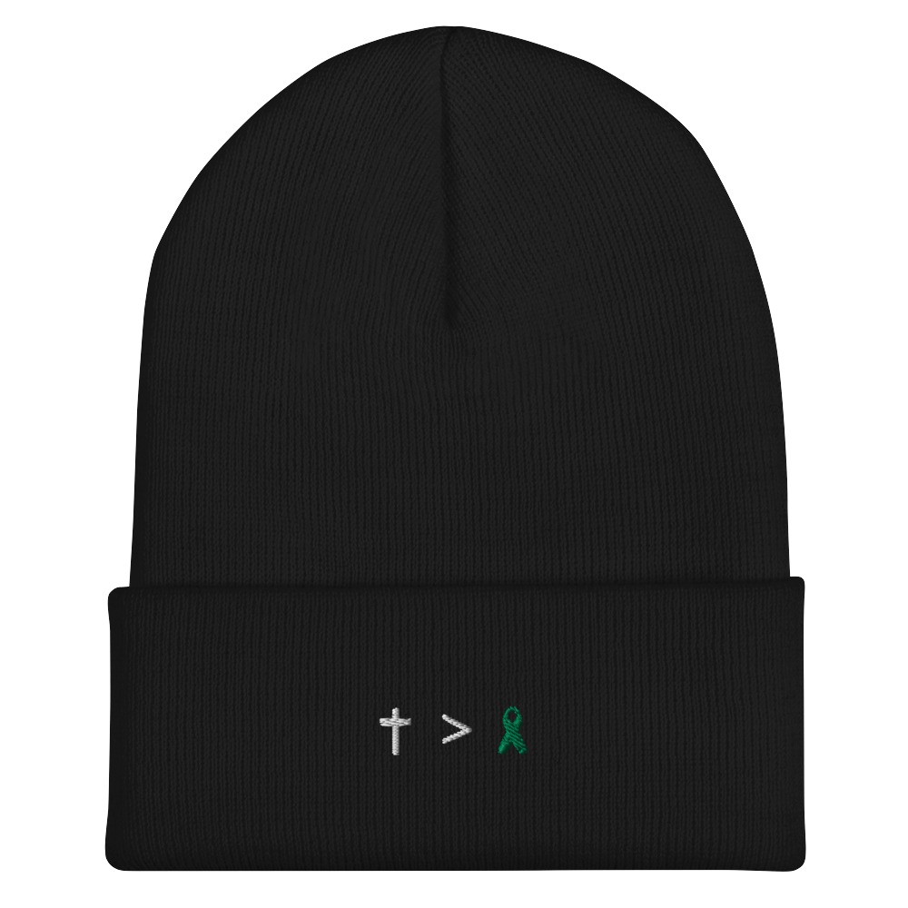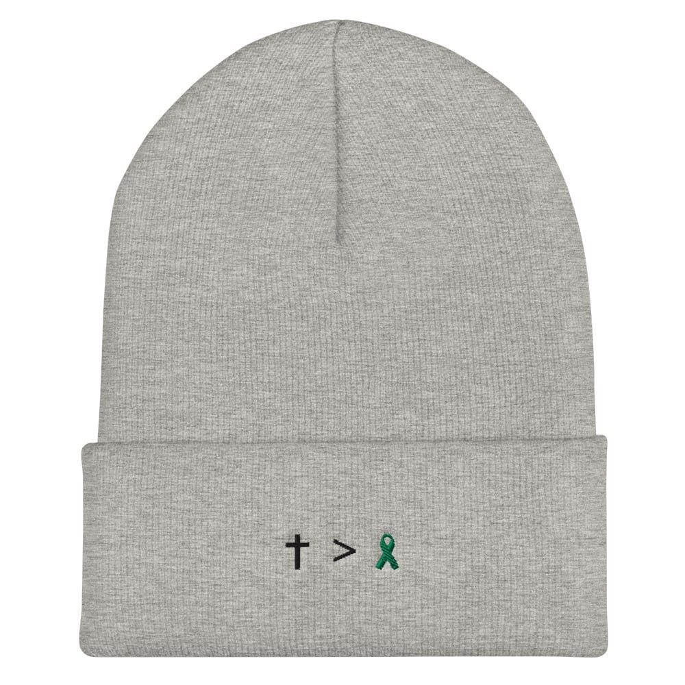 Jesus Is Greater Than Green Awareness Ribbon Embroidered Beanie