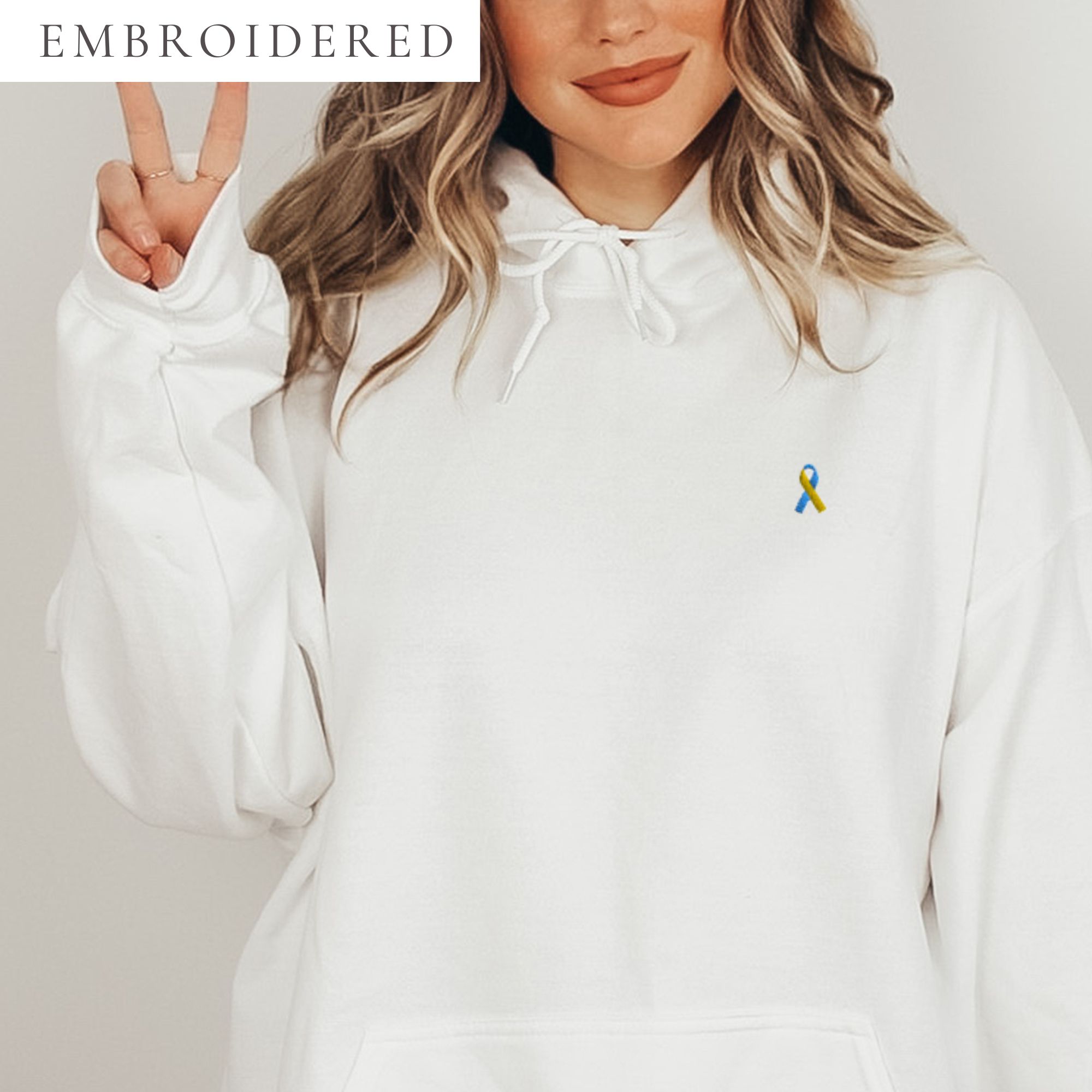 Light Blue & Yellow Awareness Ribbon Embroidered Hoodie