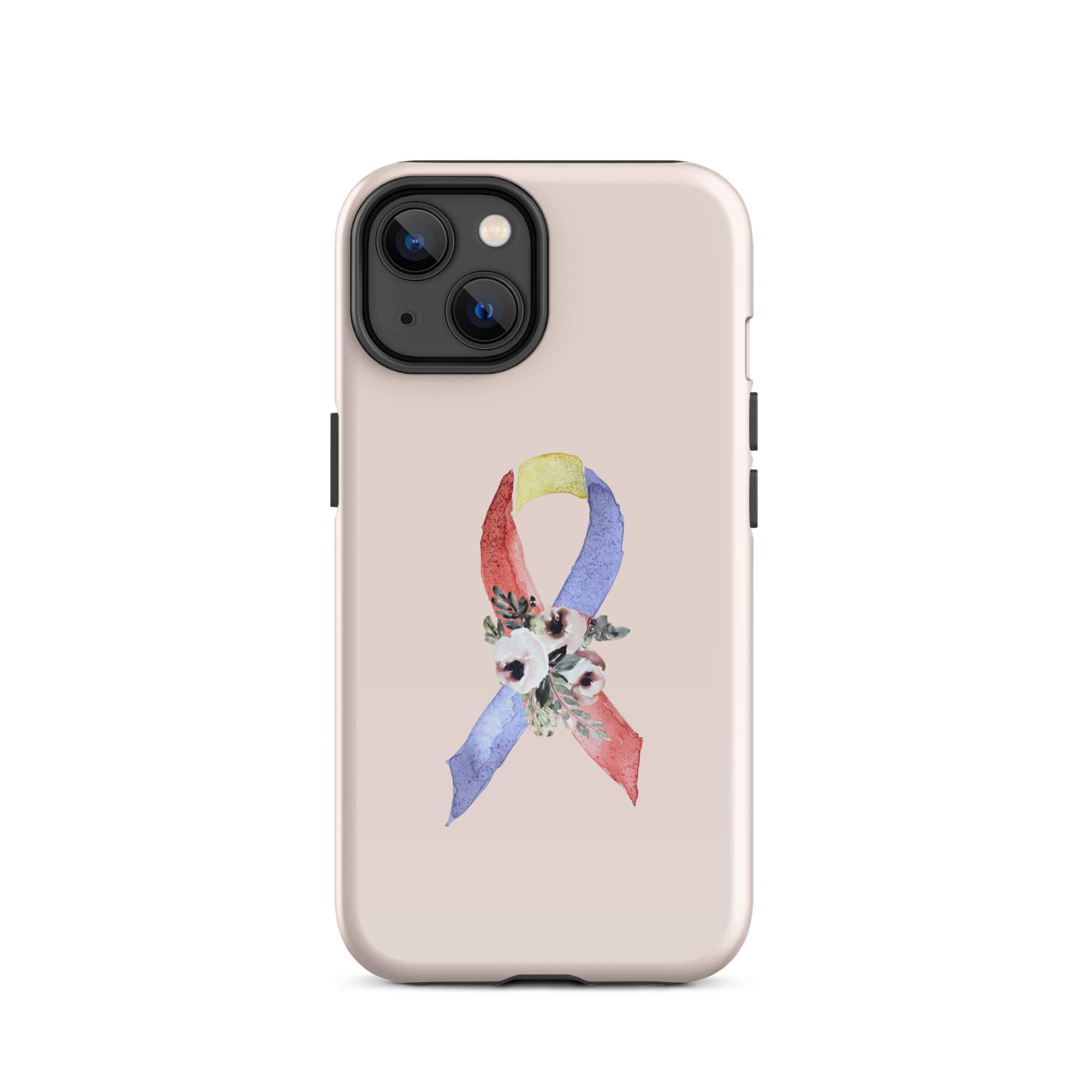 Pastel Floral Blue, Yellow & Red Awareness Ribbon Tough Case for iPhone® In Pink