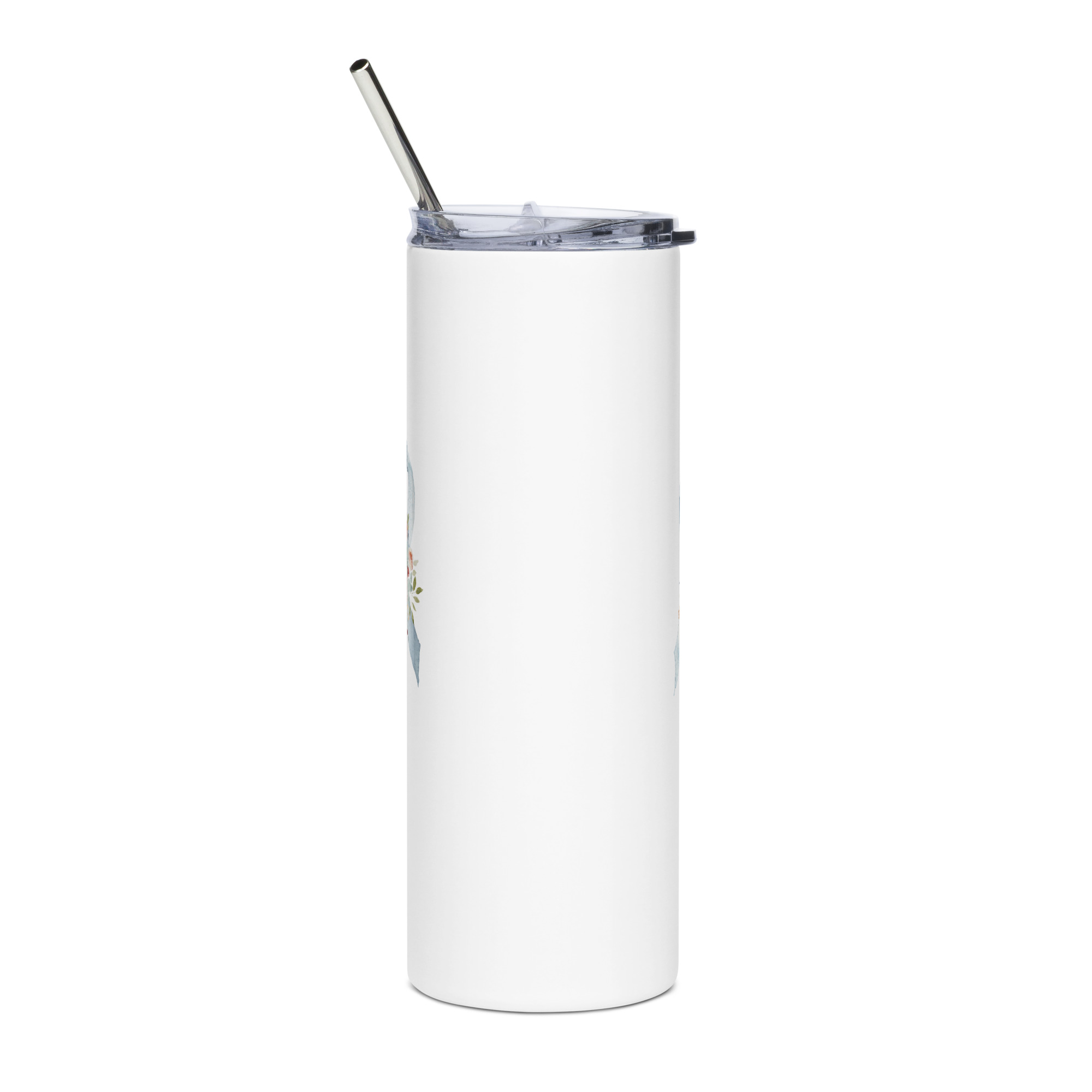 IMAGE ID: White 20oz Tumbler With The Pastel Colored, Floral Awareness Ribbon On Each Side.