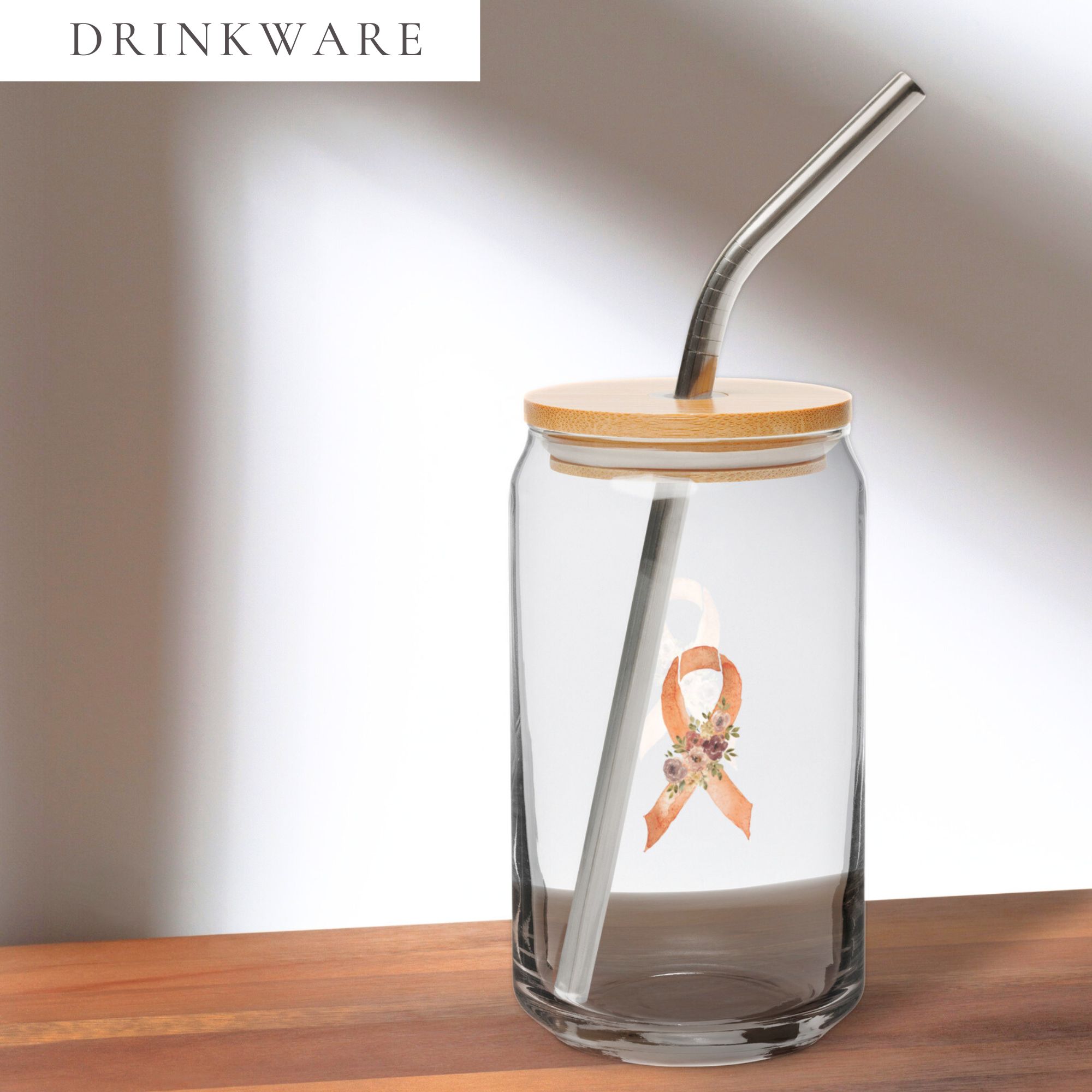 Pastel Floral Orange Awareness Ribbon Glass Can W/ Lid