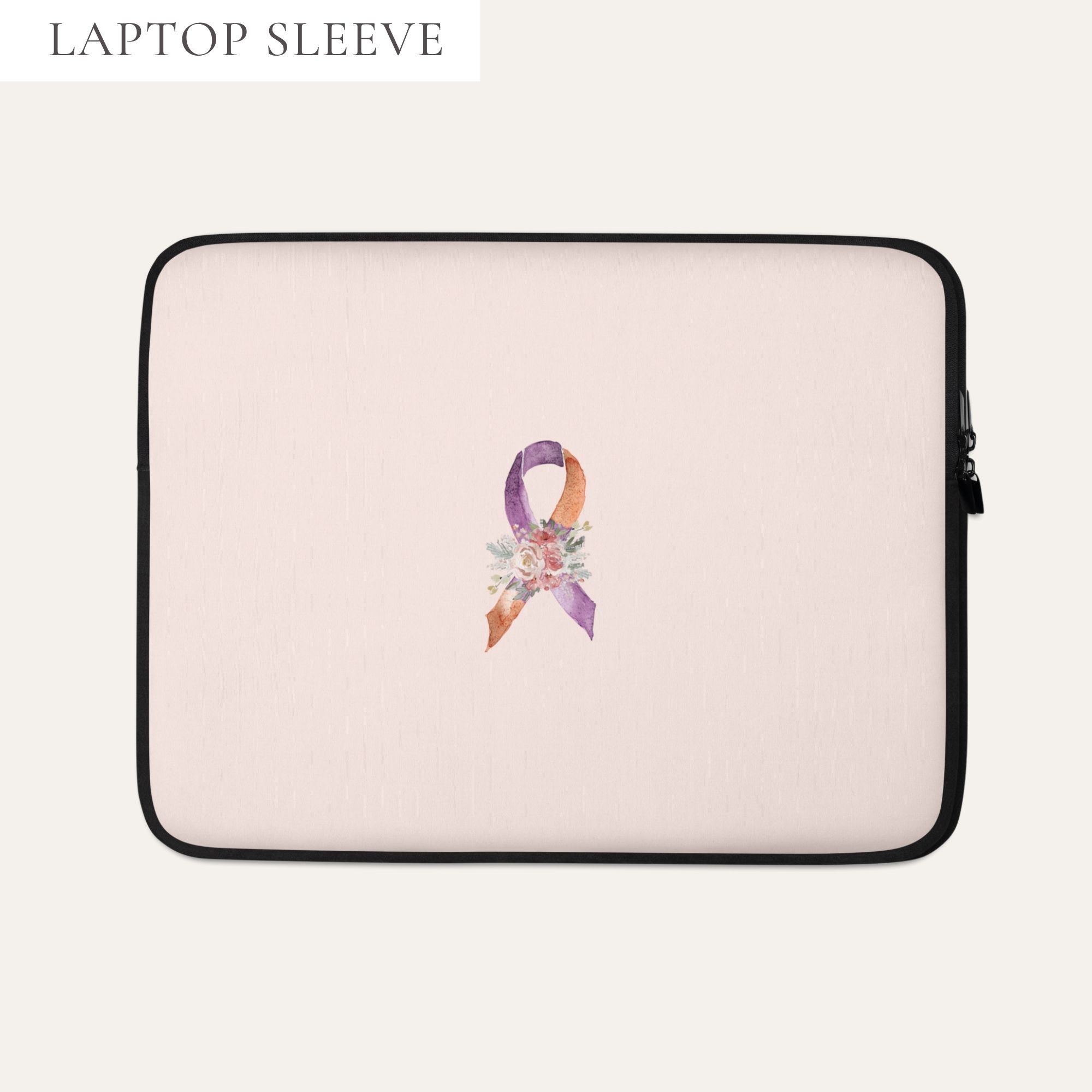 Pastel Floral Orange & Purple Awareness Ribbon Laptop Sleeve In Pink
