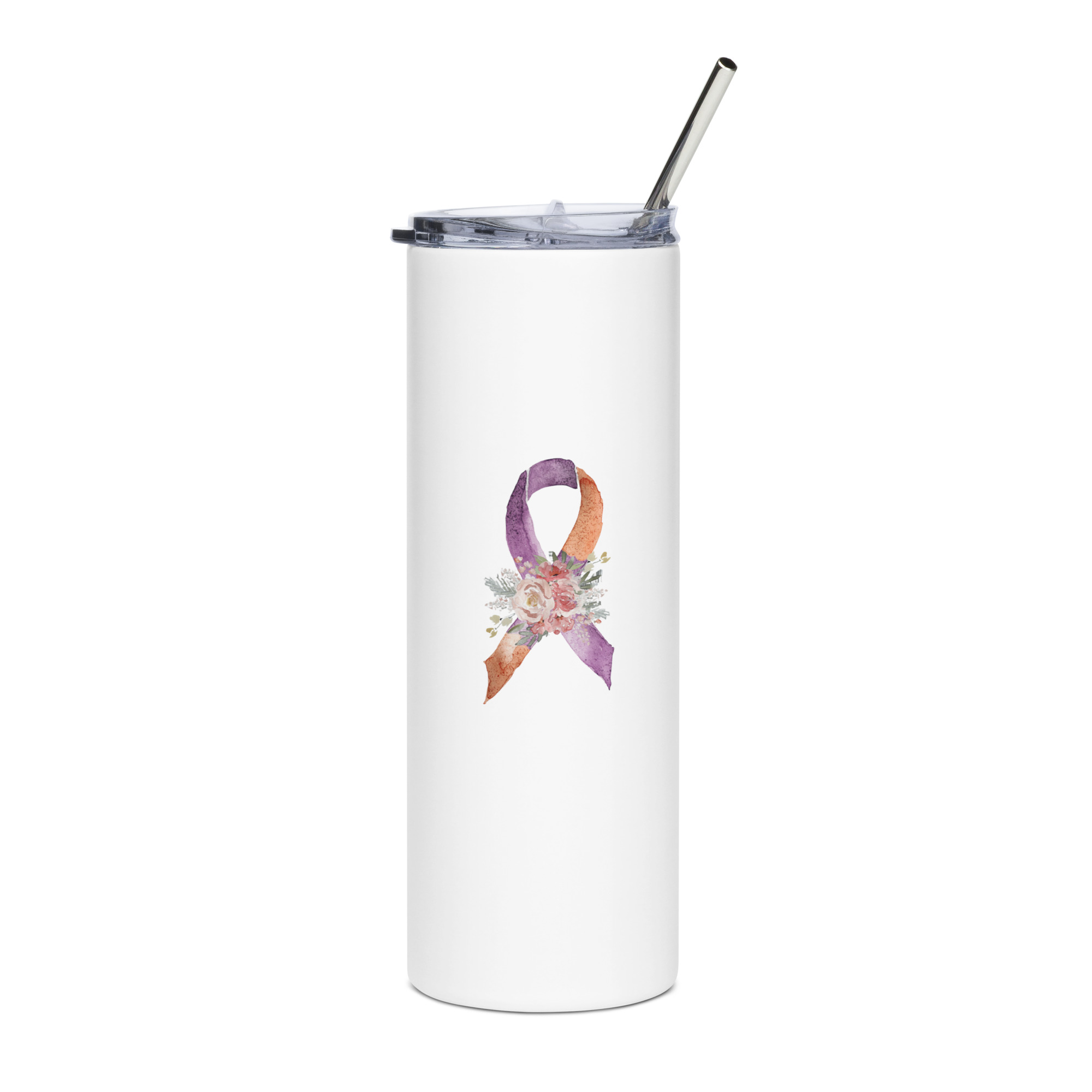 Pastel Floral Orange & Purple Awareness Ribbon Stainless Steel Tumbler