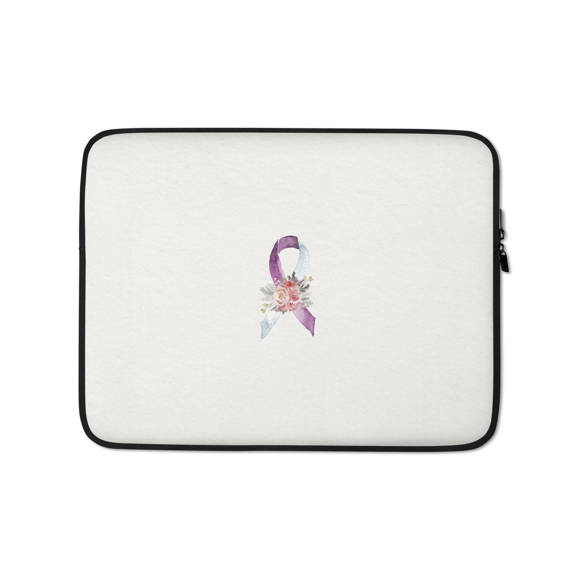 Pastel Floral Purple & White Awareness Ribbon Laptop Sleeve In Beige