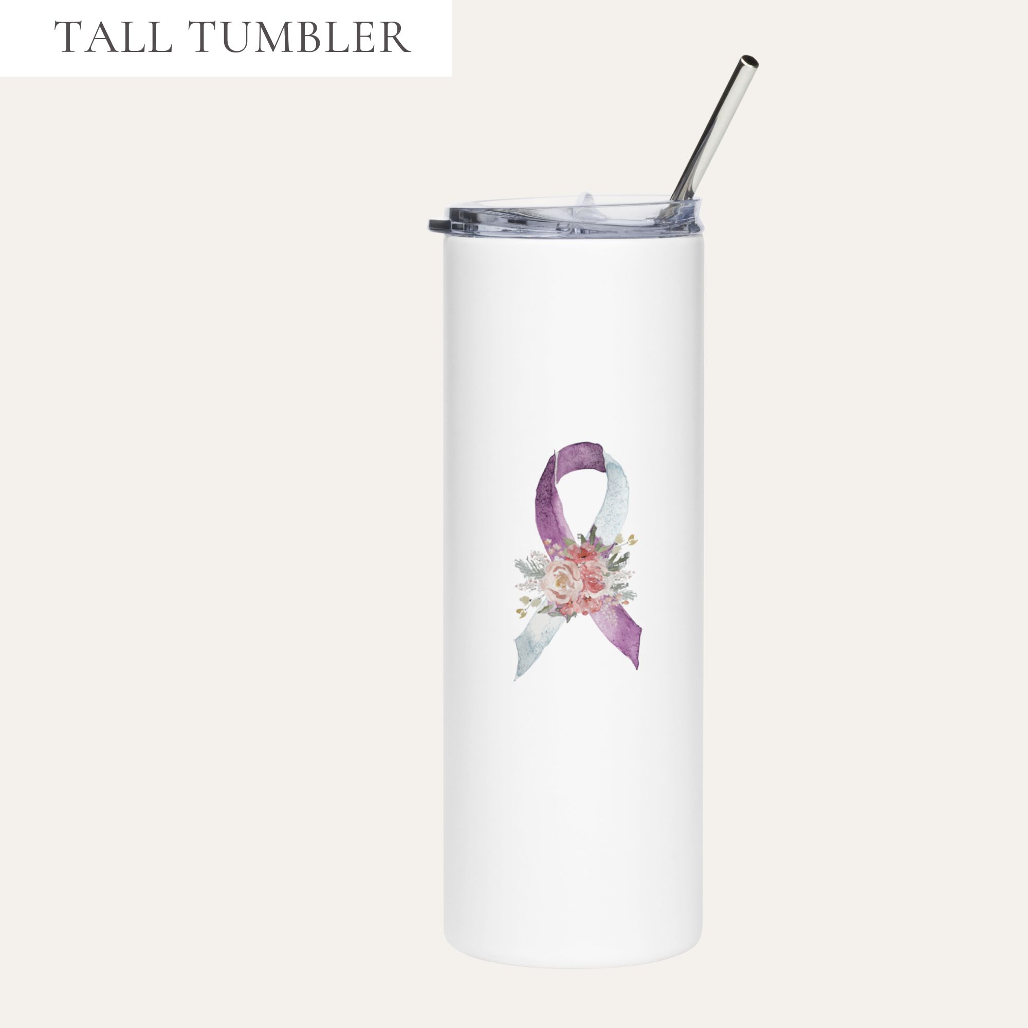 Pastel Floral Purple & White Awareness Ribbon Stainless Steel Tumbler