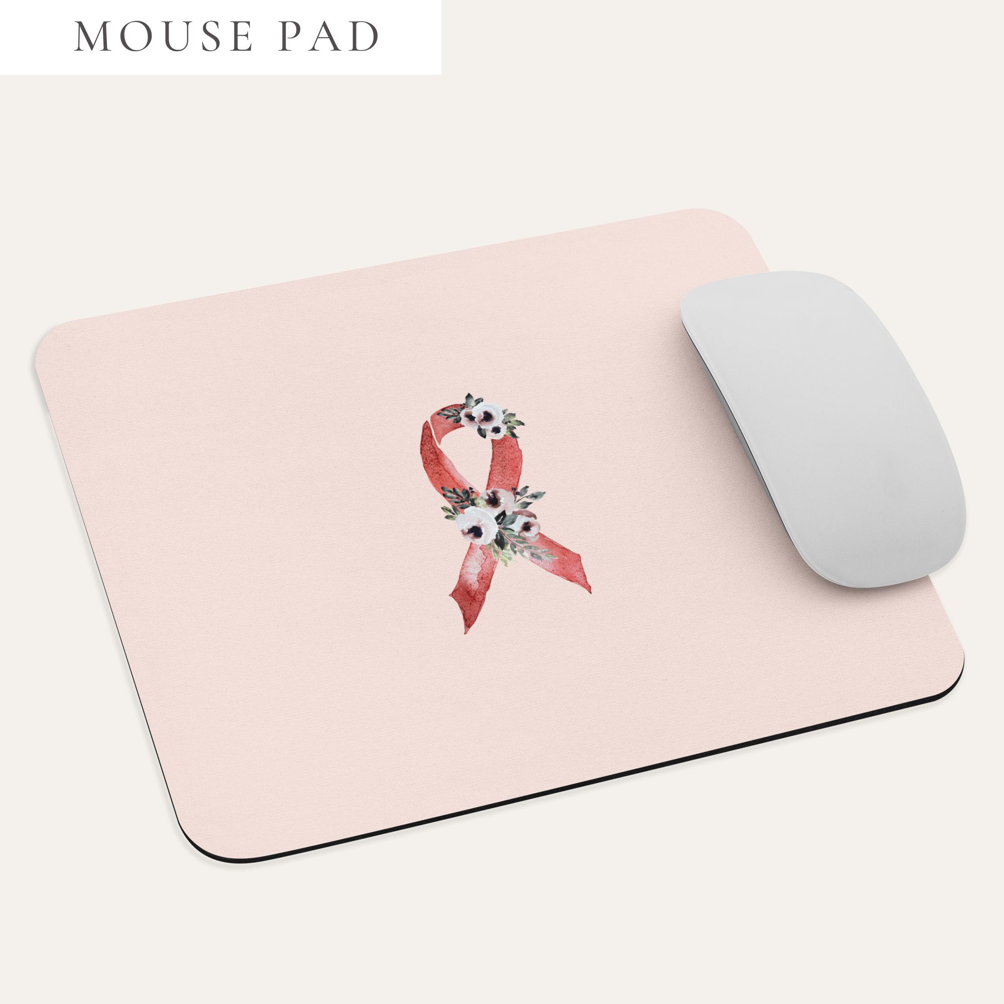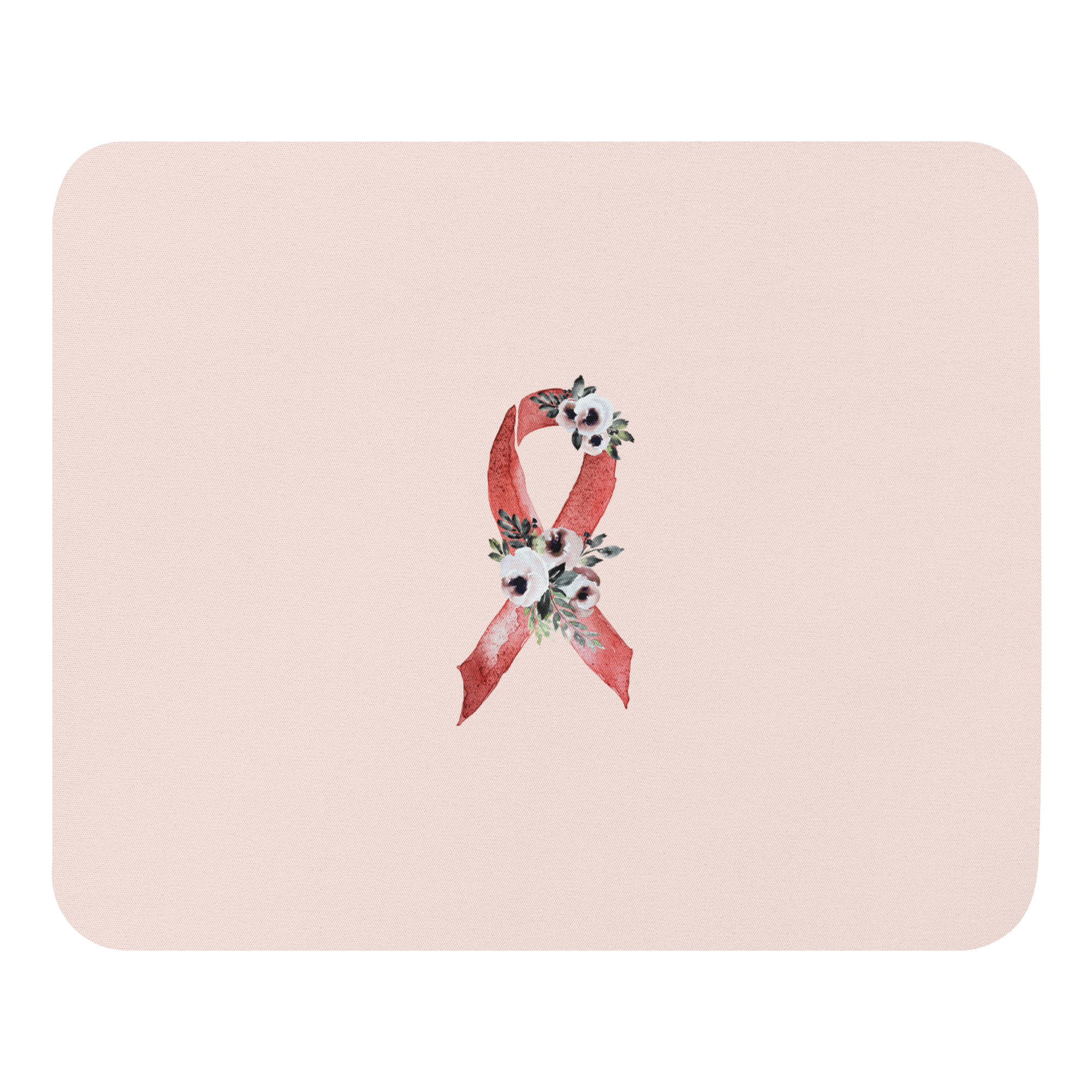 Pastel Floral Red Awareness Ribbon Mouse Pad In Pink