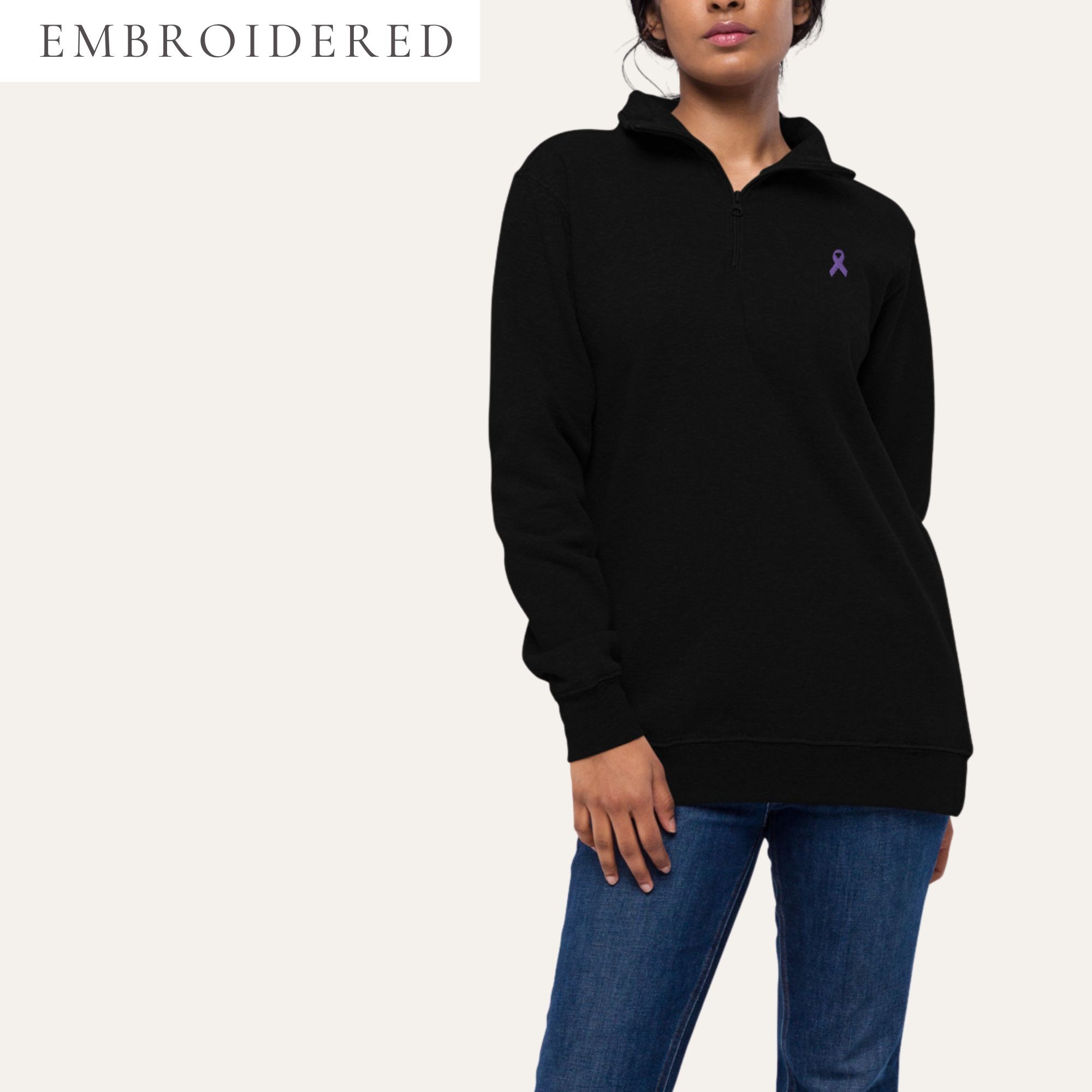 IMAGE ID: A 3/4 Zip Fleece Pullover With An Embroidered Awareness Ribbon In The Upper Left Of The Chest. Available In Multiple Colors.