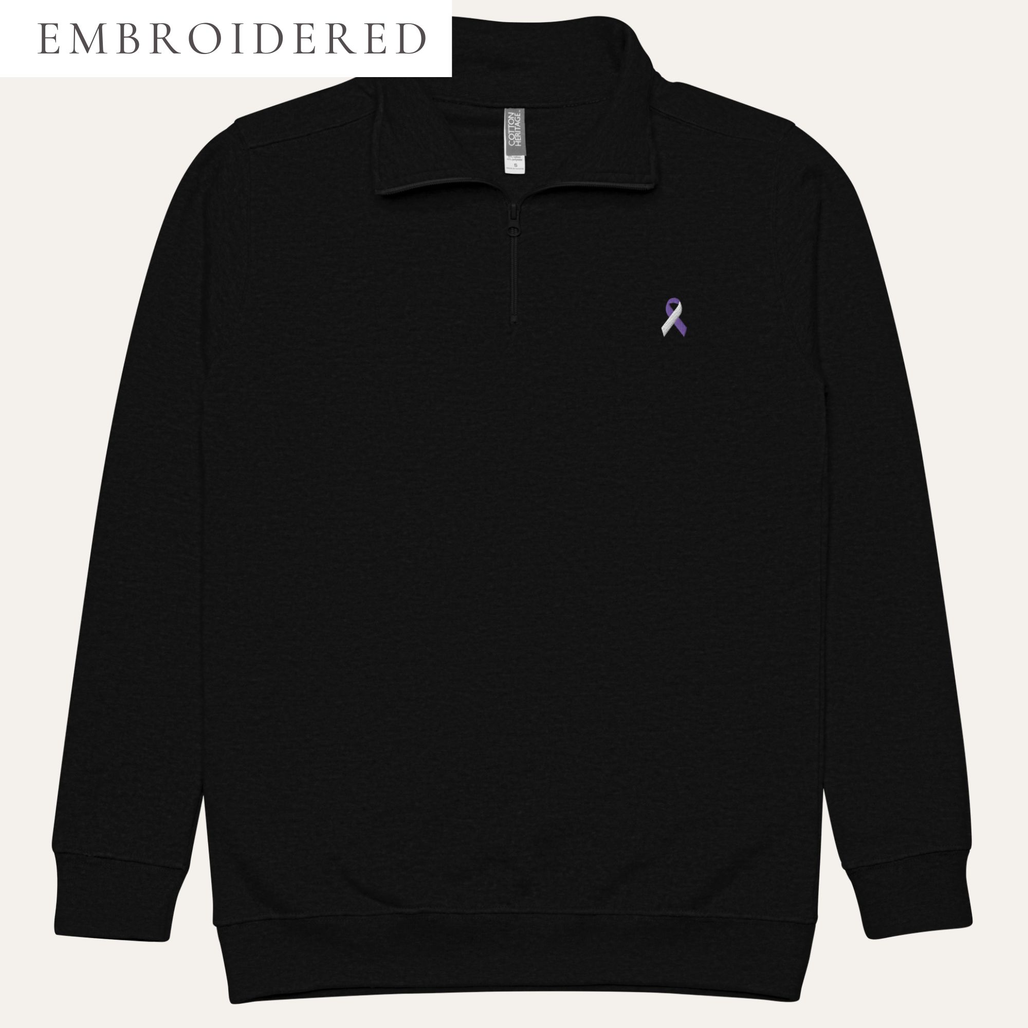 Purple & White Awareness Ribbon Embroidered Fleece Pullover