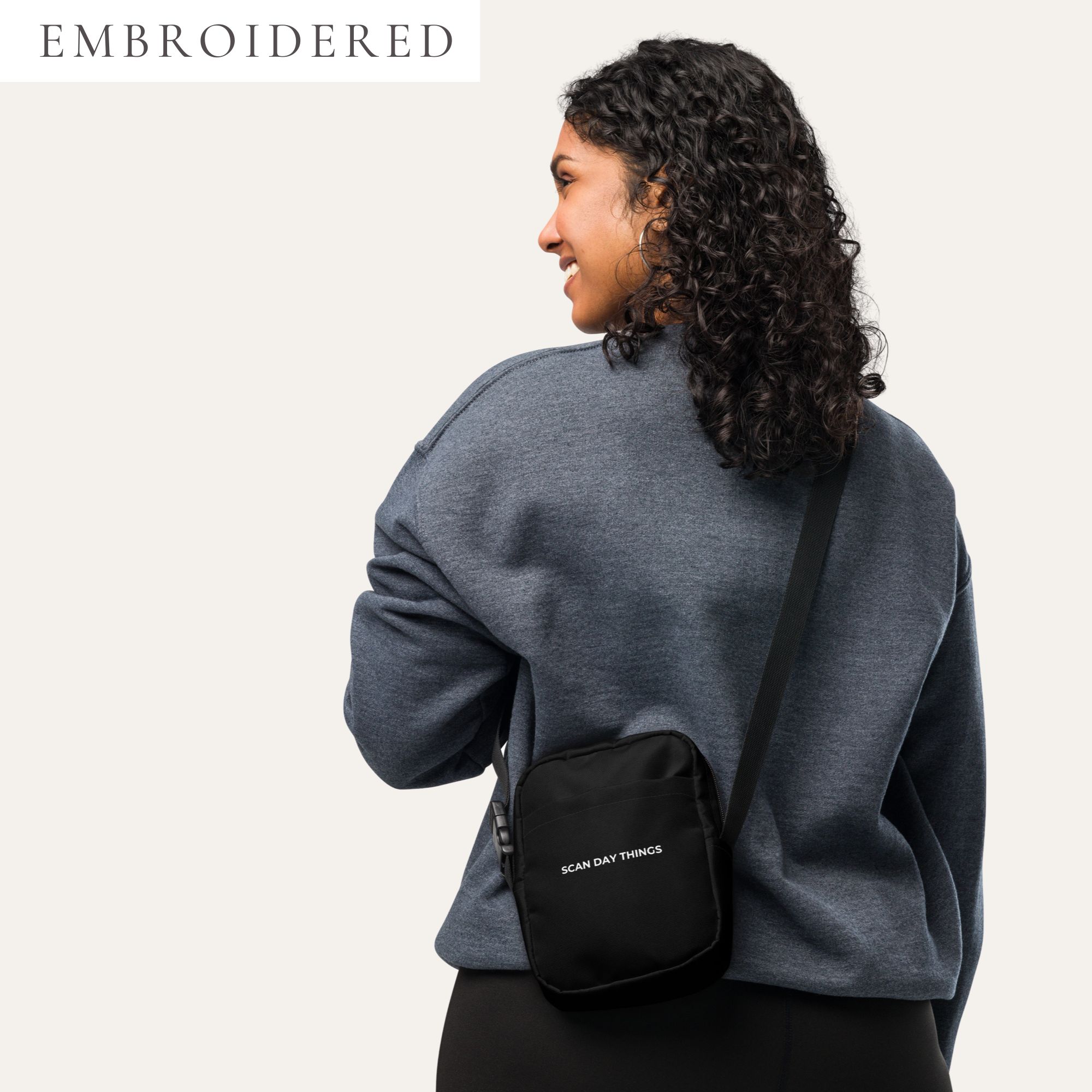 IMAGE ID: Scan Day Things In White On Black Utility Crossbody Bag
