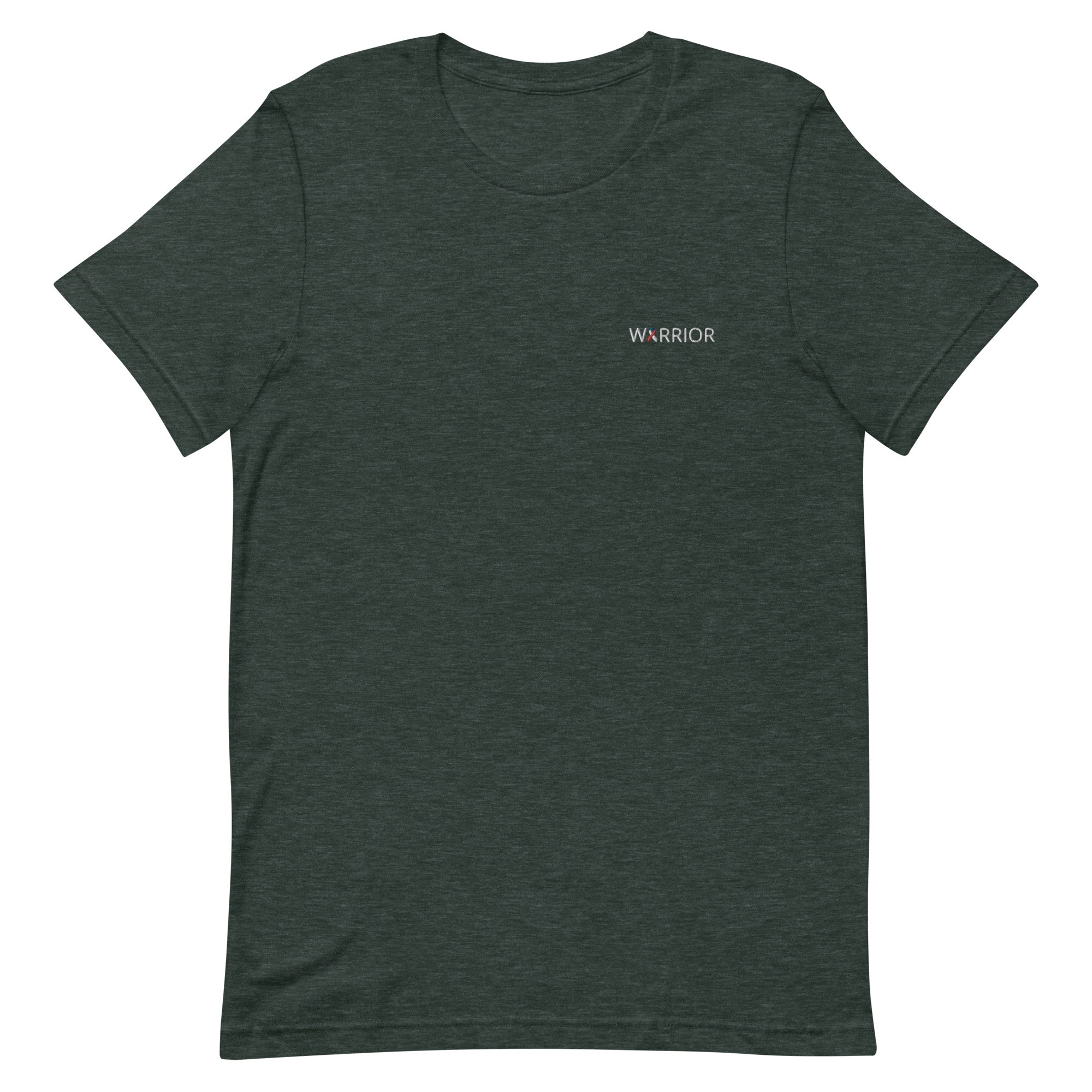IMAGE ID: Unisex Style T-Shirt. Design Features The Word “WARRIOR” Embroidered With An Awareness Ribbon In Place Of The Letter A. The T-Shirt Is Available In Multiple Colors.