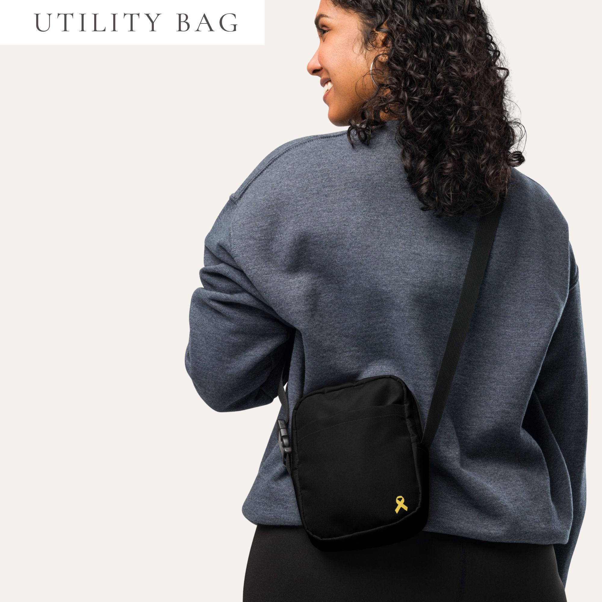 IMAGE ID: Crossbody Utility Bag With The Awareness Ribbon Displayed On The Lower Left.